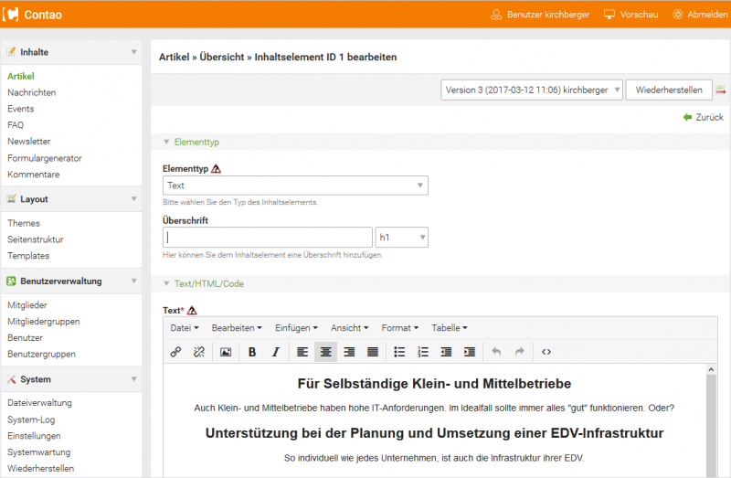 Contao ist ein stabiles und seit vielen Jahren erprobtes CMS - System.